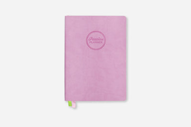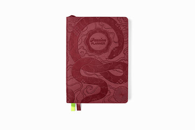 • Purple planner with a Passion Planner logo on a white background Purple planner with a green bookmark on a white background